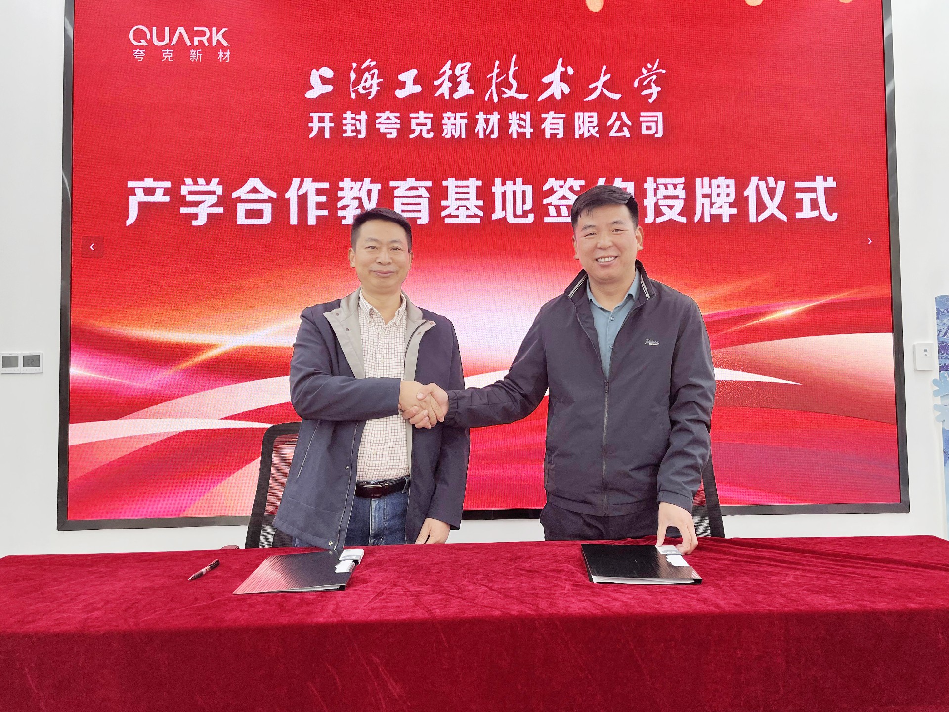 2025年11月03日上午,开封夸克新材料有限公司(以下简称 “夸克新材”)与上海工程技术大学 “产学合作教育基地” 签约授牌仪式隆重举行。